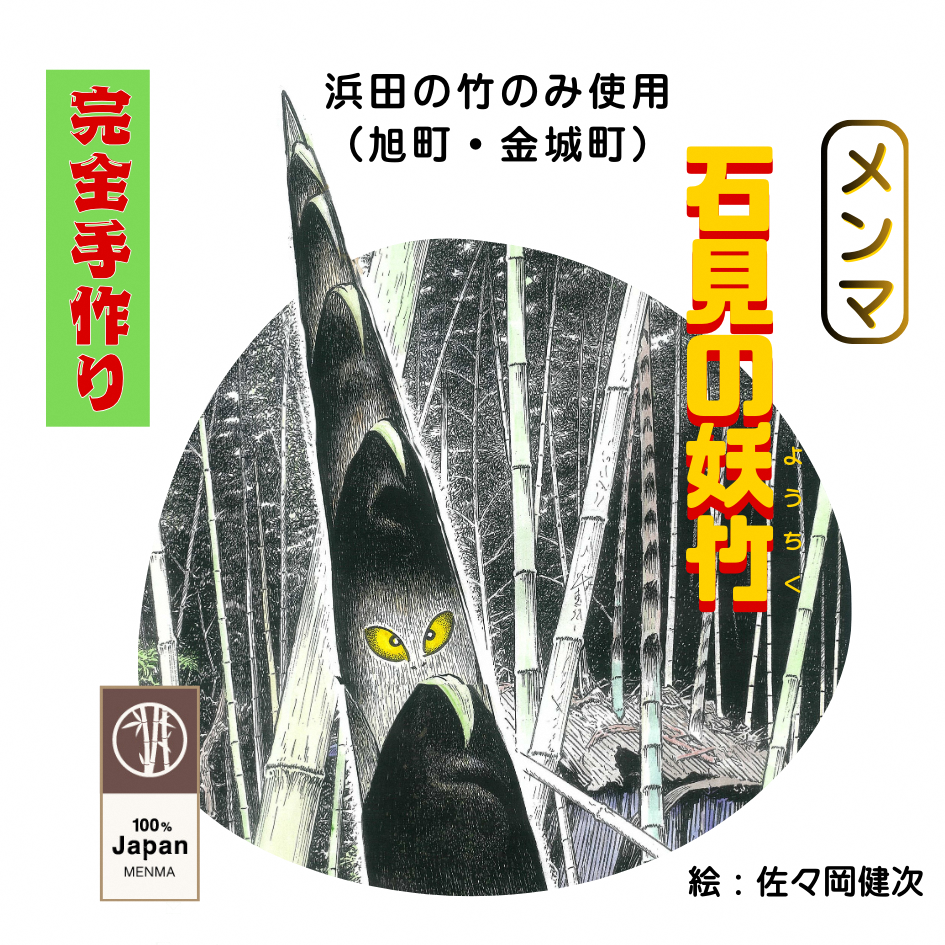 ほとんどが輸入品のメンマですが、国産(特に地元産)にこだわった手作り商品です。社会問題化してきている『放置竹林問題』に対応する取組みの一環として商品化しました。放置すると人を困らせる姿は「妖怪」のようで、パッケージは故・水木しげるさんの初代チーフアシスタントを務めた佐々岡健次さんにデザインして頂きました。
