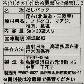 商品名 | 浜田港で水揚げされた魚のだしパック |