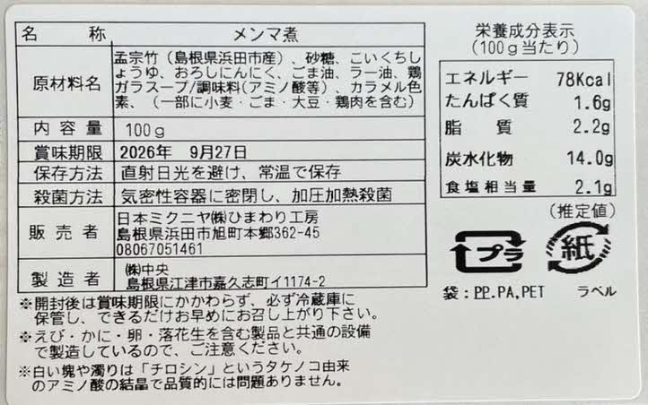 | 商品名 | 石見の妖竹(メンマ) |