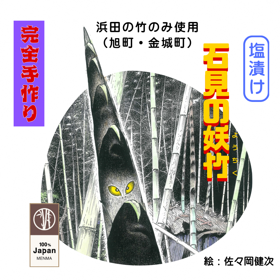 ほとんどが輸入品のメンマですが、国産(特に地元産)にこだわった手作り商品です。社会問題化してきている『放置竹林問題』に対応する取組みの一環として商品化しました。放置すると人を困らせる姿は「妖怪」のようで、パッケージは故・水木しげるさんの初代チーフアシスタントを務めた佐々岡健次さんにデザインして頂きました。